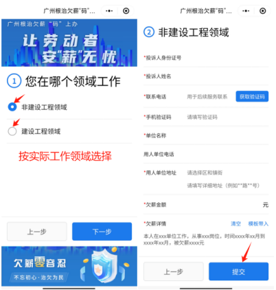1、根据您的工作领域选择投诉模板,完整填写相关信息,点击提交完成投诉申请,请保持电话畅通并耐心等候工作人员联系。